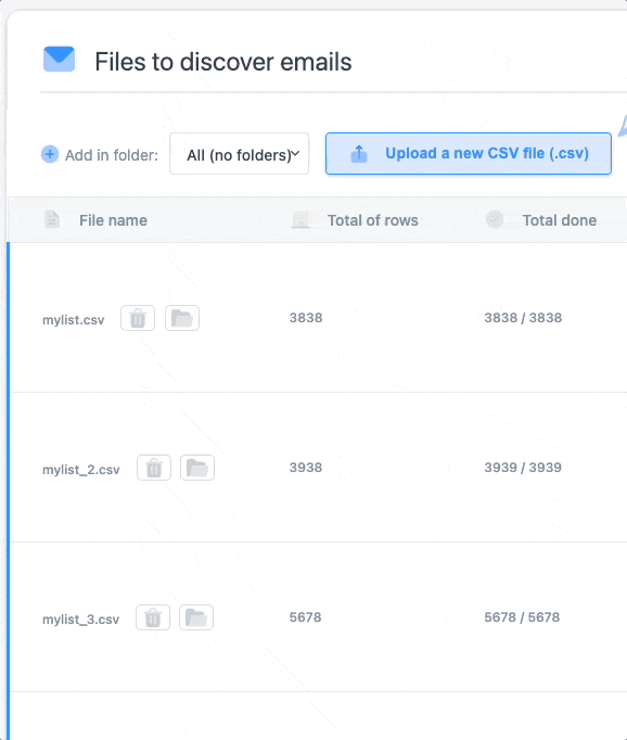 Find and confirm business emails by uploading lists of names and companies in one shot.
